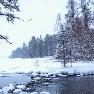 The red-barked Pinus resinosaSeem as ancient as history itself.They stand beside... Details